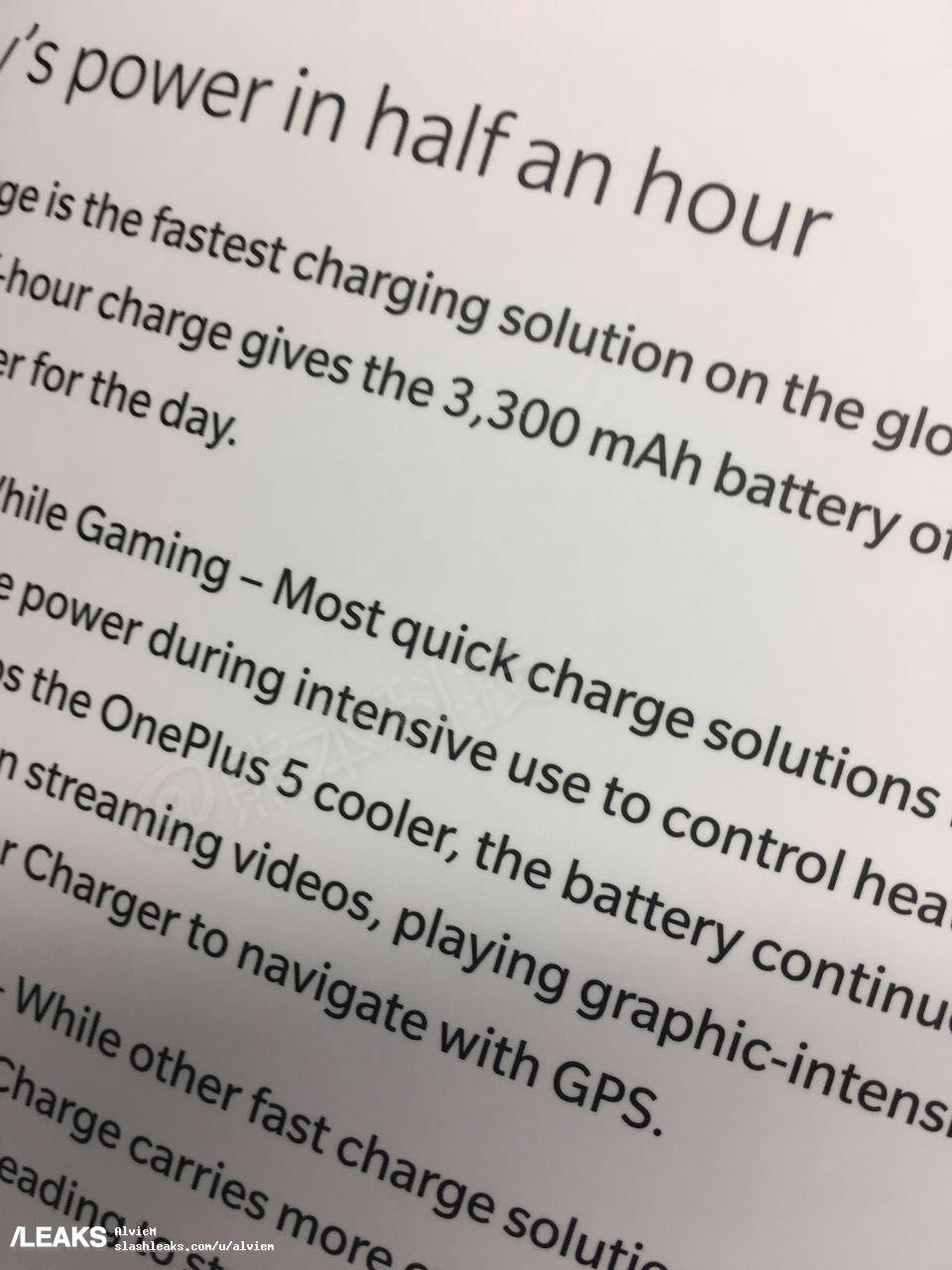 As you can read from the image above, the OnePlus 5 will have 3300mah battery inside. So now the probability of 3300mah battery capacity seems be more than 4000mah. As according to previous announcement by Pete Lau (OnePlus CEO) the OnePlus 5 will be the slimmest flagship by OnePlus ever, so the 3300mah capacity seems more legit & practical as of now than 4000mah. If you can understand the incomplete sentences in this image, you will notice that the fast charging on OnePlus 5 is also mentioned, though it is not mentioned that whether the Dash Charge 2 will be introduced or it will be the same Dash Charge as compared to OnePlus 3/3T.
