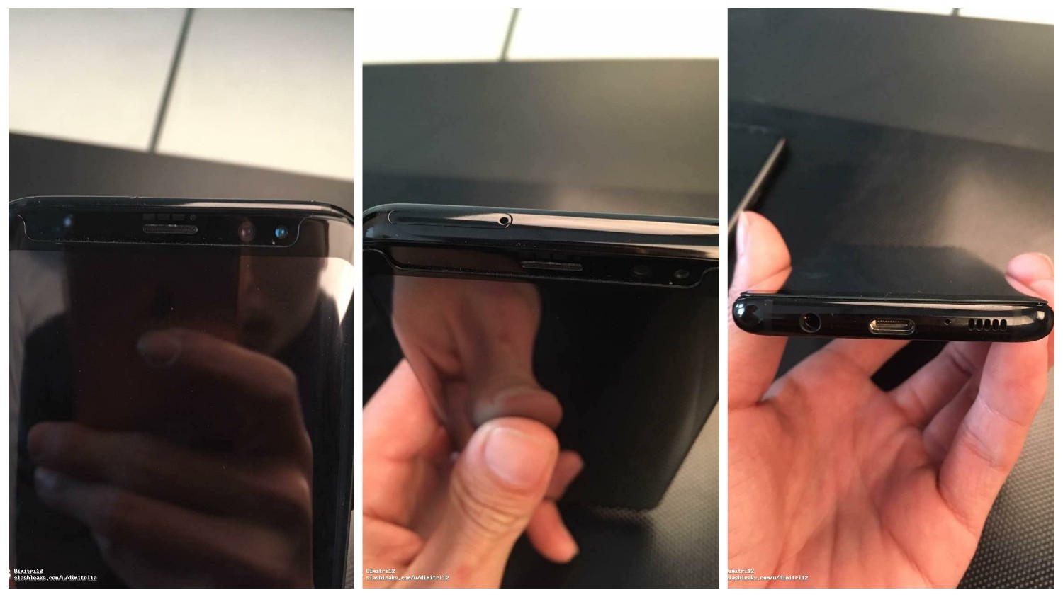 Now coming to other images, it’s only one model, either Galaxy S8 or Galaxy S8+. The 1st one is nothing but the detailed look of earpiece area. The 2nd picture shows the top of the phone where the SIM card and SD card slot is placed. The 3rd picture shows the bottom of the phone that has 3.5mm headphone jack, USB Type C port, main microphone and speaker grill.