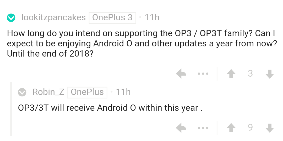 Now OnePlus has said that the OnePlus 3 & 3T will get the Android O update by the end of this year i.e. by the end of 2017. This was said by Robin Z. (Oxygen OS Product) has given this statement in yesterday’s AMA (Ask Me Anything) session held by OnePlus on Reddit. One person asked that when they will update the OnePlus 3/3T to Android O ? Can we expect the update by the end of 2018 ? To this Robin replied that both devices will get Android O update by the end of this year. Below is the screenshot of that question as well as answer.