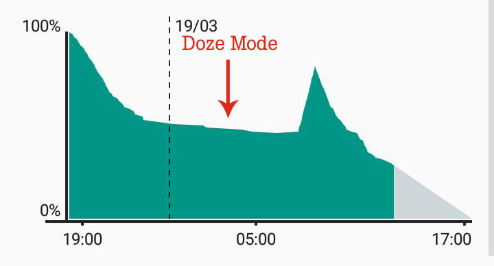 This how the Doze mode works, you can spot the difference in the battery graph.