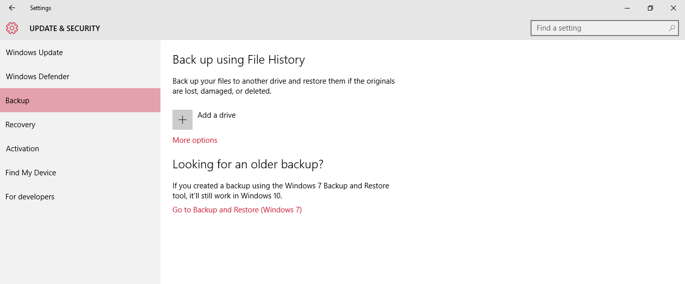 Backup and click ‘Add a Drive’.