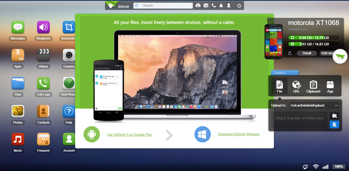 activities of Phone on PC, Mac or on Web browser remotely. AirDroid is