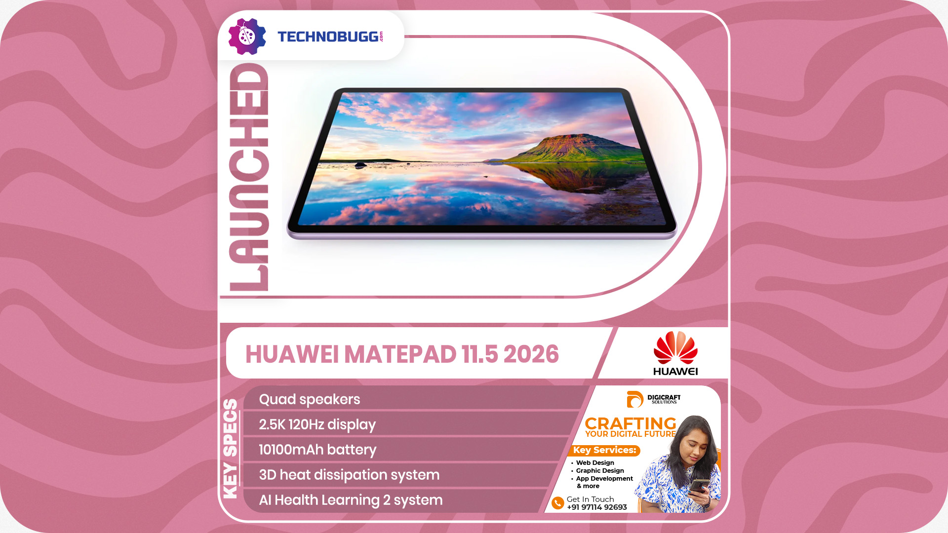 Along with the new Huawei Nova 15 Series, the company has introduced its new tablet called the Huawei MatePad 11.5 2026 and the device features a 2.5K 120Hz display along with a large 10100mAh battery and quad speakers among others. So let’s get into the article to learn the full details of the device.