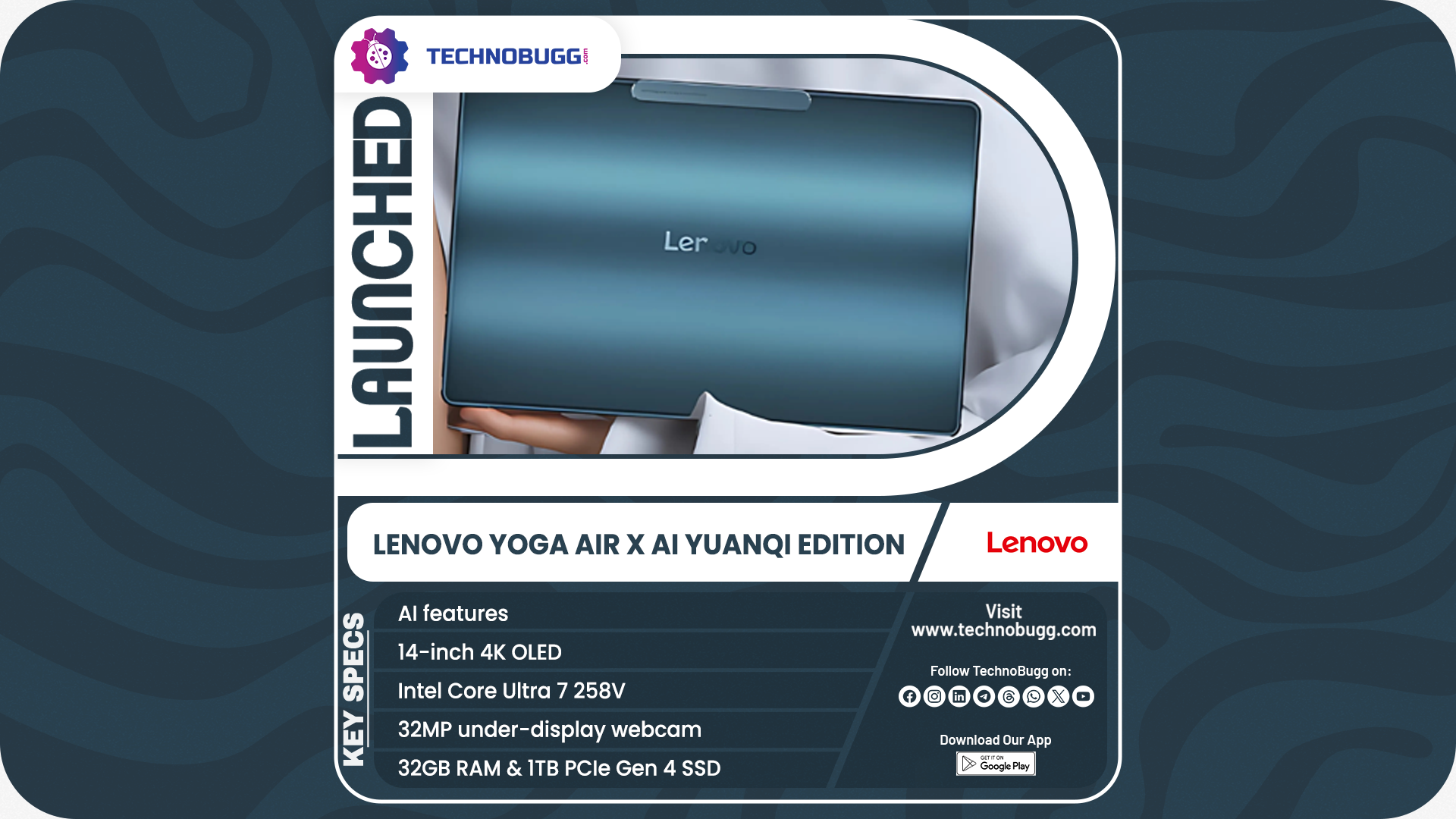 Regarding the pricing and availability, the latest Lenovo Yoga Air X AI Yuanqi Edition with 32GB of RAM and 1TB of storage is priced at 14,999 yuan and the laptop will be available in the markets of China.