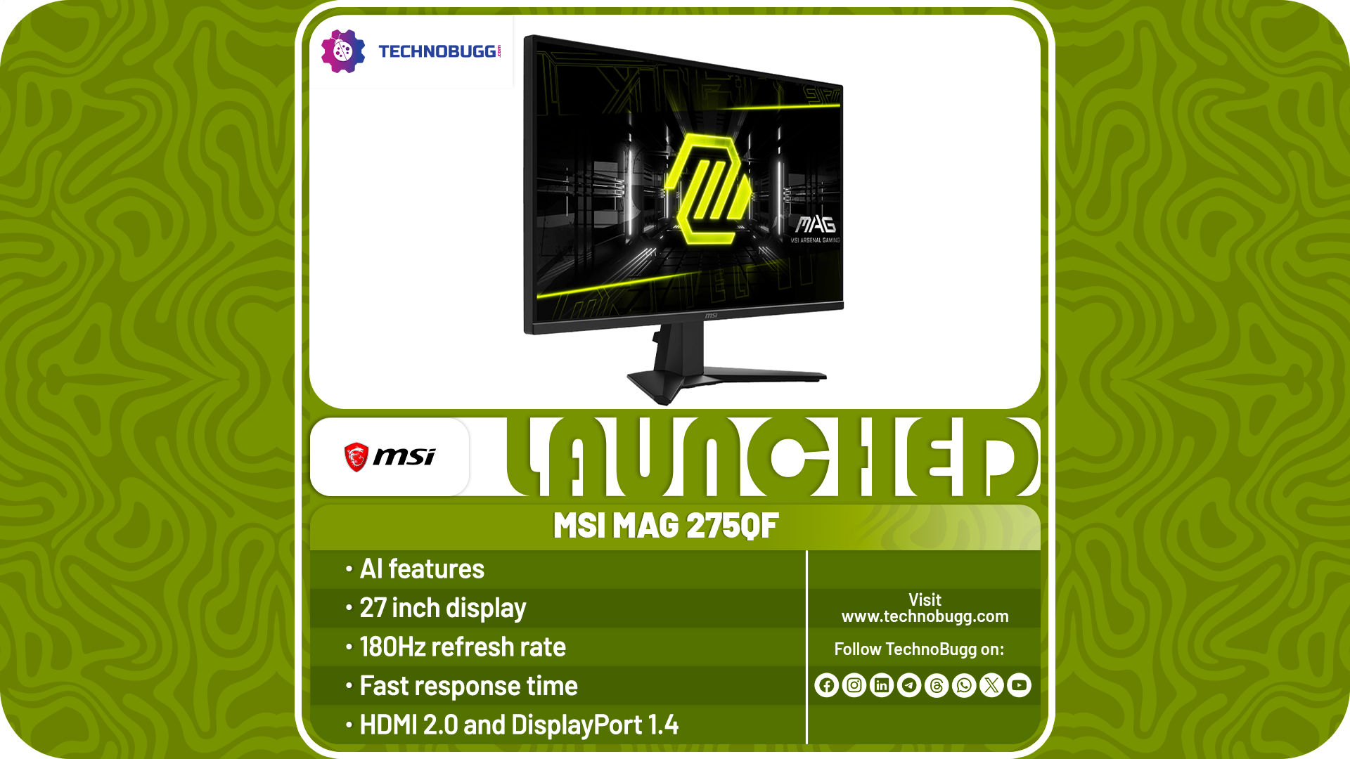 The latest MSI monitor features a 27-inch 2K Rapid IPS panel with a refresh rate of 180Hz and 2560 x 1440 pixels resolution along with a GtG grayscale response time of 0.5ms. It also comes with a peak brightness of 300 nits and the latest monitor offers a 1000:1 contrast ratio.