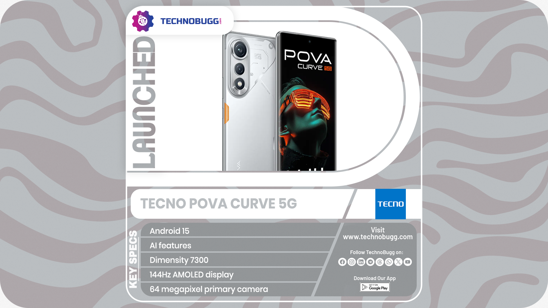 TECNO has officially launched Its new powerful smartphone in the markets of India called the TECNO POVA Curve 5G. The device comes with the power of the Dimensity 7300 mobile processor and a 144Hz AMOLED display among others. Here are the full details of the smartphone.